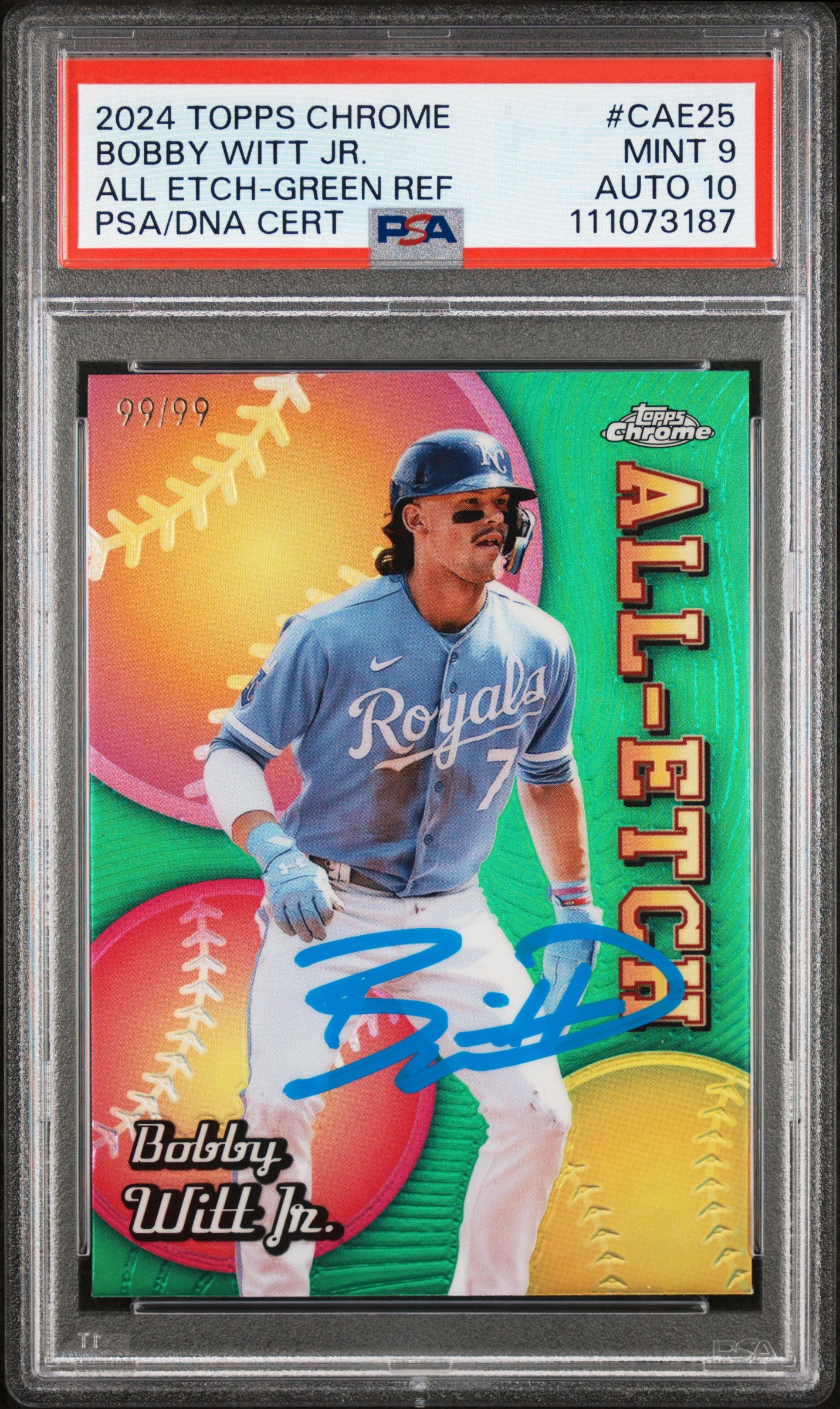 Bobby Witt Jr. Signed 2024 Topps Chrome AE GR #CAE25 Card 9 Auto 10! PSA Slab