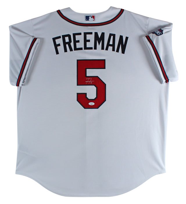 Braves Freddie Freeman Signed White Nike Jersey w/ 2021 World Series Patch JSA