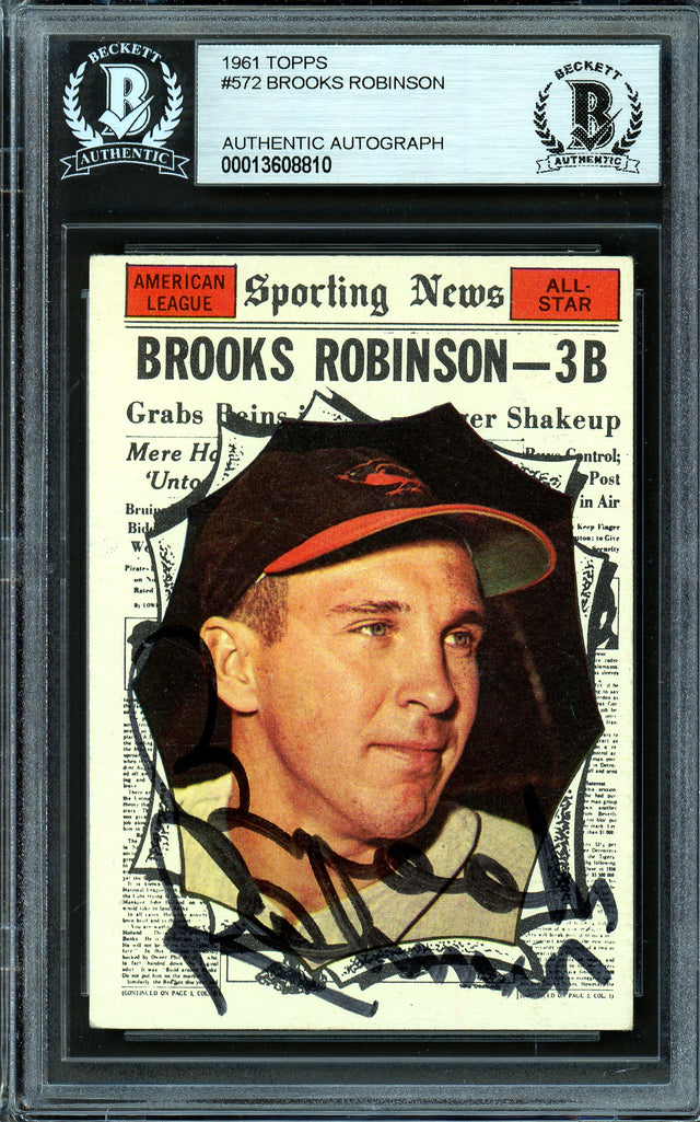 Brooks Robinson Autographed 1961 Topps Card #572 Baltimore Orioles All-Star Beckett BAS #13608810