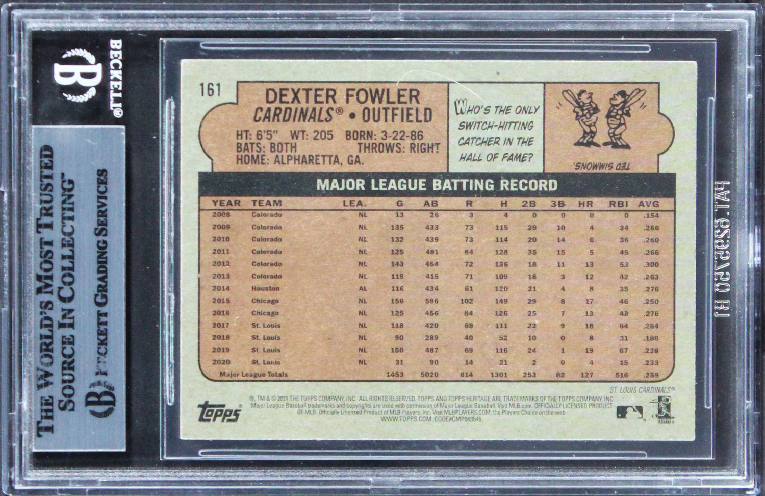 Cardinals Dexter Fowler Signed 2021 Topps Heritage #161 Card BAS Slabbed