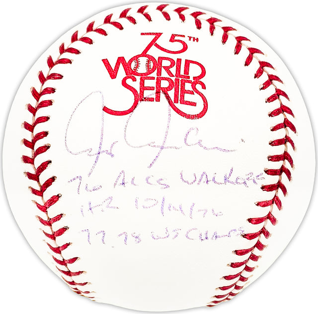 This Official 1978 World Series Logo MLB Baseball has been hand-signed by Chris Chambliss and features a special inscription: "76 ALCS Walkoff HR 10/14/76 77-78 WS Champs." A must-have for baseball historians and Yankees fans, this collectible baseball celebrates Chambliss’ unforgettable walk-off home run in the 1976 ALCS and the back-to-back World Series championships of 1977 and 1978.