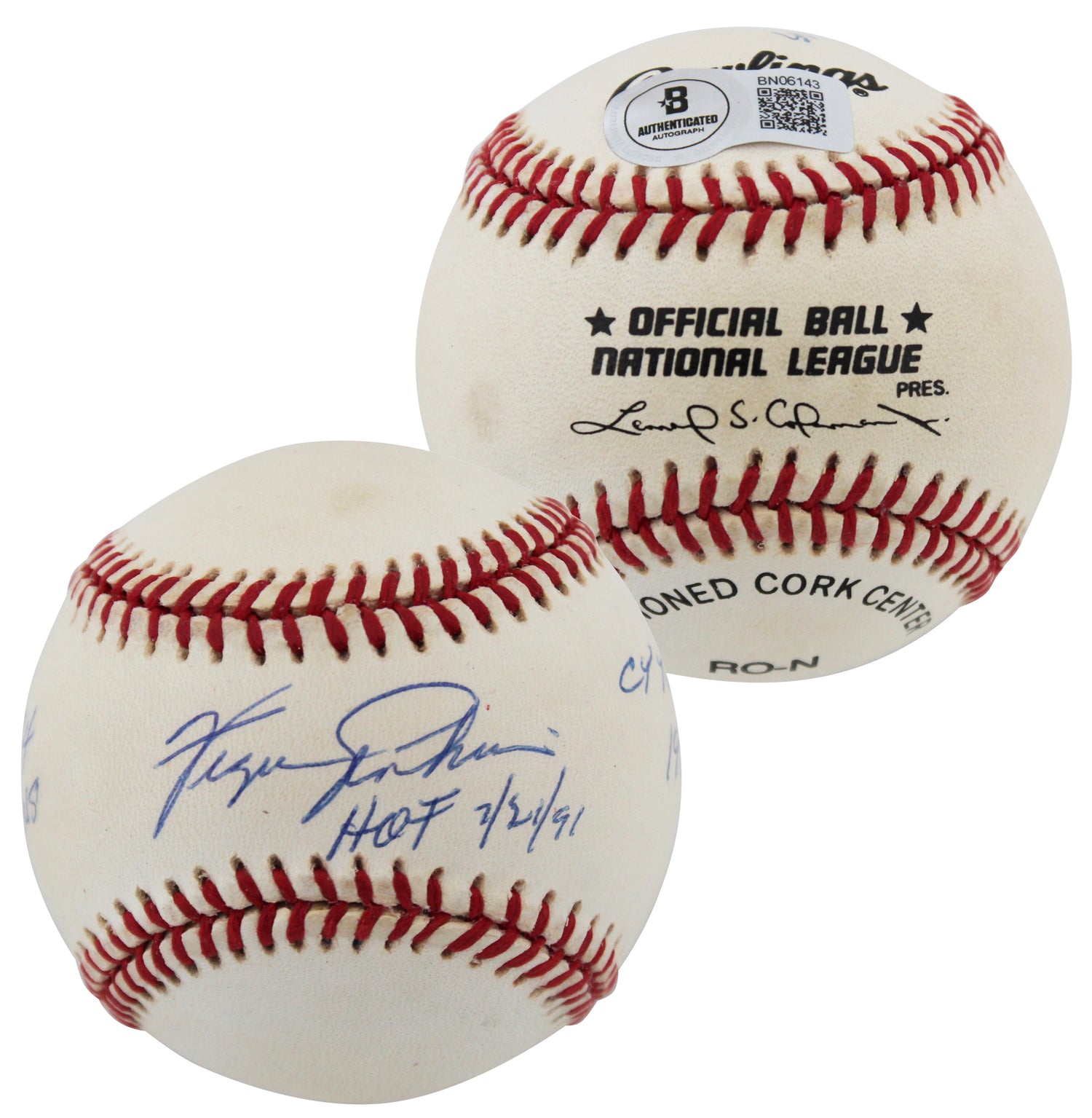 Own a piece of baseball history with this Fergie Jenkins Autographed Leonard Coleman Official National League Baseball, featuring the exclusive inscriptions "HOF 7/21/91, 284 Wins, CY Young 1971." A legendary pitcher for the Chicago Cubs, Jenkins was inducted into the Baseball Hall of Fame in 1991 and remains one of the most dominant pitchers of his era.
