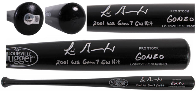 Own a piece of baseball history with this Luis Gonzalez Autographed Black Louisville Slugger Baseball Bat, featuring the special inscription "2001 WS Game 7 GW Hit, Gonzo." This bat commemorates Gonzalez's legendary game-winning hit in Game 7 of the 2001 World Series, securing the Arizona Diamondbacks' first championship in franchise history.