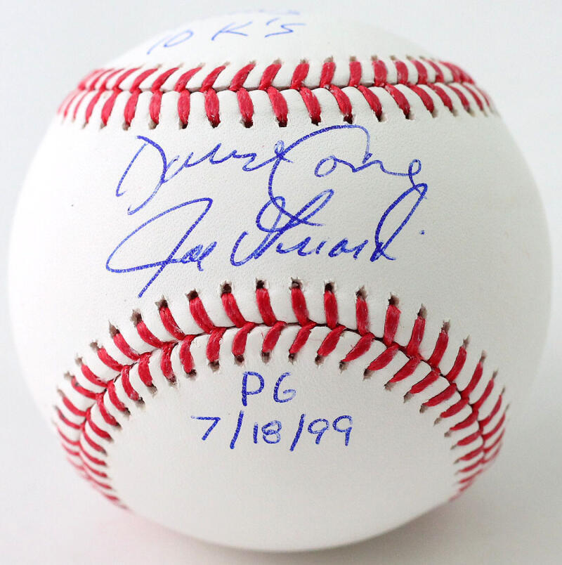 Own a piece of baseball history with this hand-signed Rawlings Official Major League Baseball, autographed by David Cone and Joe Girardi. This incredible collector’s item celebrates one of the most unforgettable moments in New York Yankees history—Cone’s perfect game on July 18, 1999.