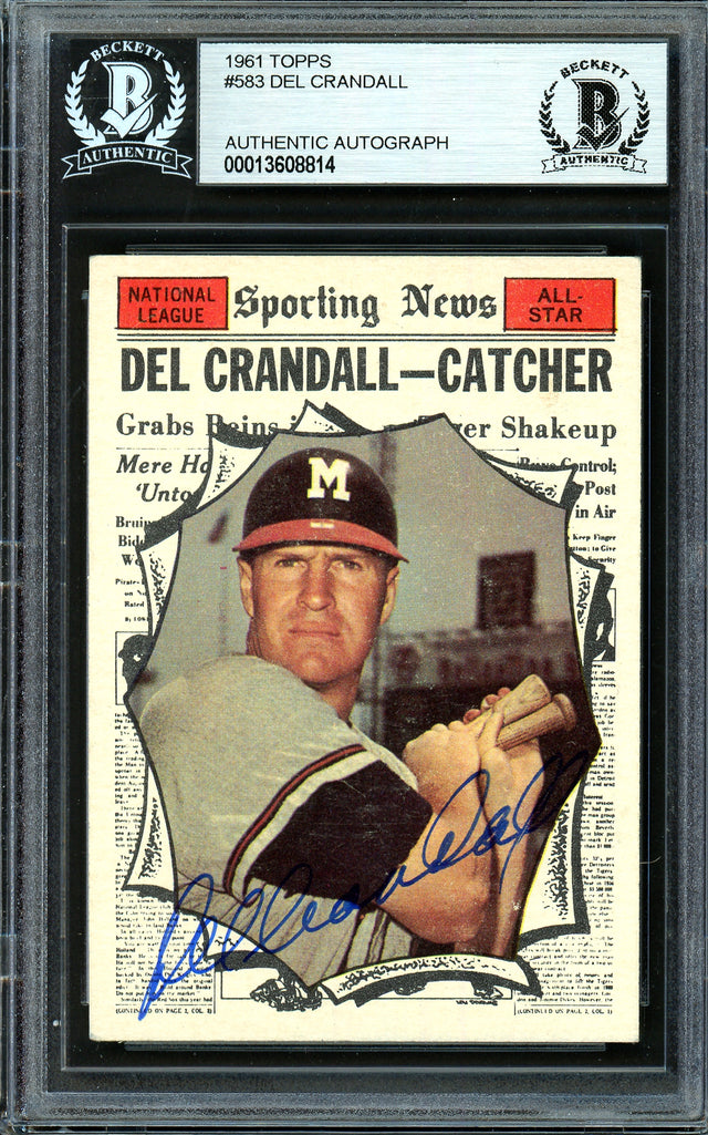 Del Crandall Autographed 1961 Topps Card #583 Milwaukee Braves All-Star Beckett BAS #13608814
