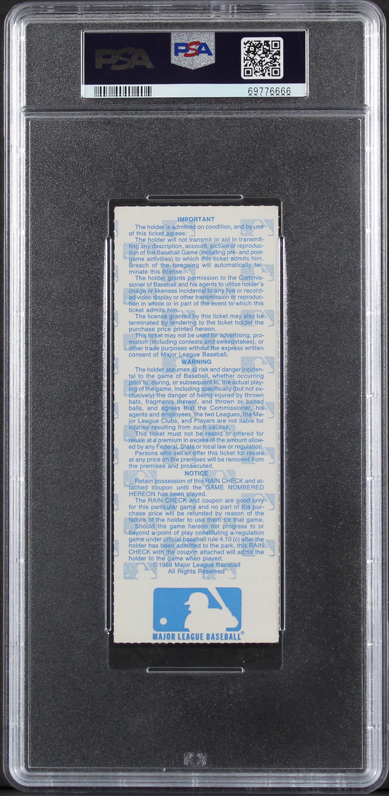 Own a piece of baseball history with this Autographed & Auto Graded Gem Mint 10 October 15, 1988, World Series Game 1 Ticket Stub, personally signed by Kirk Gibson of the Los Angeles Dodgers. This rare collectible is inscribed with "WS Gm 1 Walkoff HR, 88 WS Champs", commemorating Gibson’s legendary walk-off home run that secured a crucial victory for the Dodgers against the Oakland Athletics.