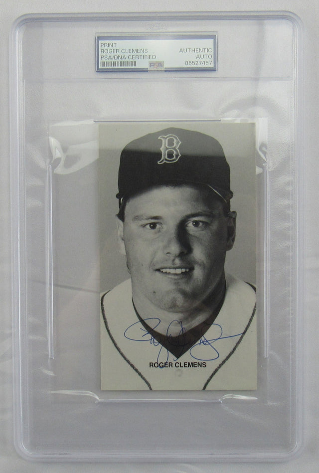 Add a legendary piece to your memorabilia collection with this Roger Clemens Signed Encapsulated Print, authenticated by PSA/DNA. Known as "The Rocket," Roger Clemens is one of the most dominant pitchers in Major League Baseball history, with a career that spanned over two decades, including iconic stints with the Boston Red Sox, New York Yankees, and Houston Astros. This officially signed print captures Clemens' legacy and comes encapsulated for protection and display, making it a must-have for devoted collectors and fans of baseball greatness.