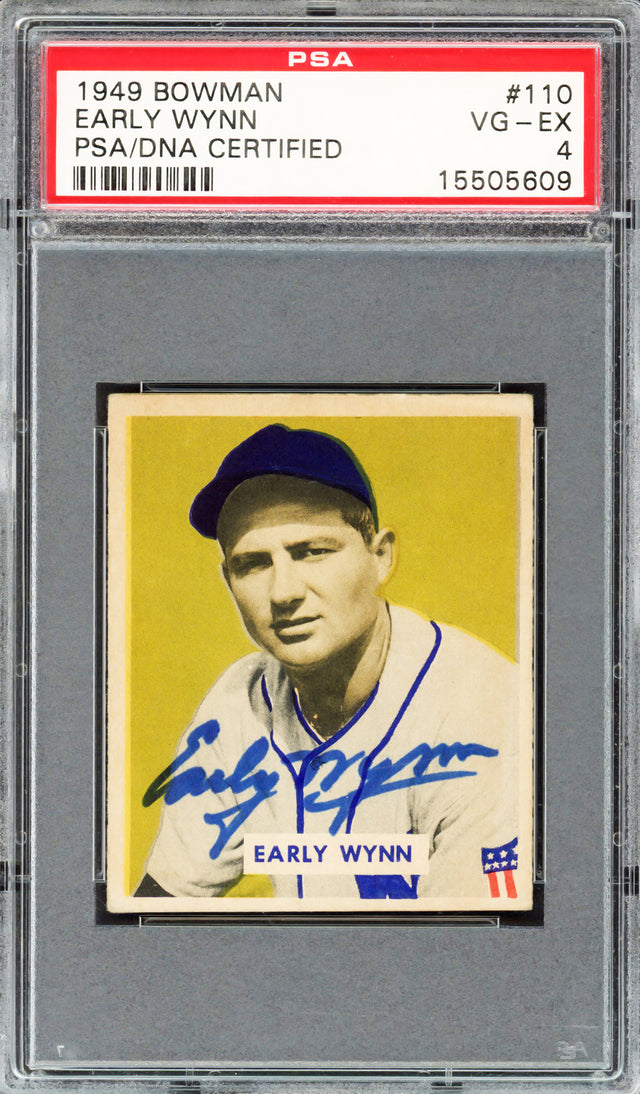 Early Wynn Autographed 1949 Bowman Rookie Card #110 Cleveland Indians PSA 4 PSA/DNA #15505609