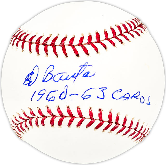 Own a piece of baseball history with this Official MLB Baseball hand-signed by Ed Bauta, a key pitcher for the St. Louis Cardinals from 1960-1963. This rare collectible features the special inscription "1960-63 Cards," commemorating his time with the team.