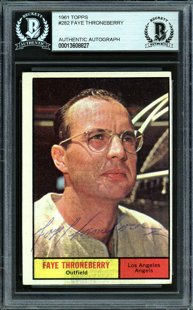 Faye Throneberry Autographed 1961 Topps Card #282 Los Angeles Angels Beckett BAS #13608827