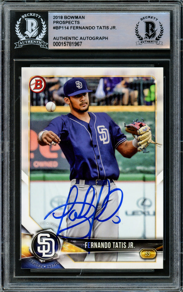 Fernando Tatis Jr. Autographed 2018 Bowman Prospects Card #BP114 San Diego Padres Beckett BAS Stock #216872