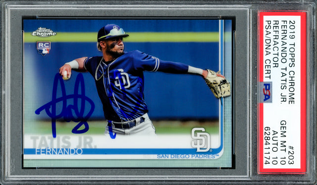 Fernando Tatis Jr. Autographed 2019 Topps Chrome Refractor Rookie Card #203 San Diego Padres PSA 10 Auto Grade Gem Mint 10 PSA/DNA #62841174