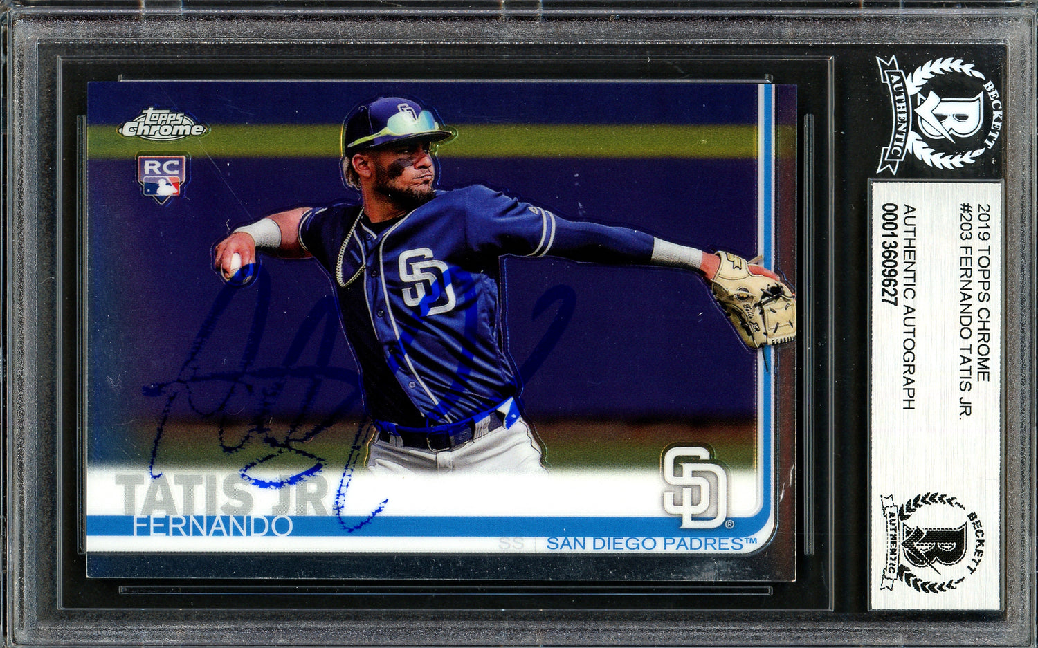 Fernando Tatis Jr. Autographed 2019 Topps Chrome Rookie Card #203 San Diego Padres (Bubbling) Beckett BAS #13609627