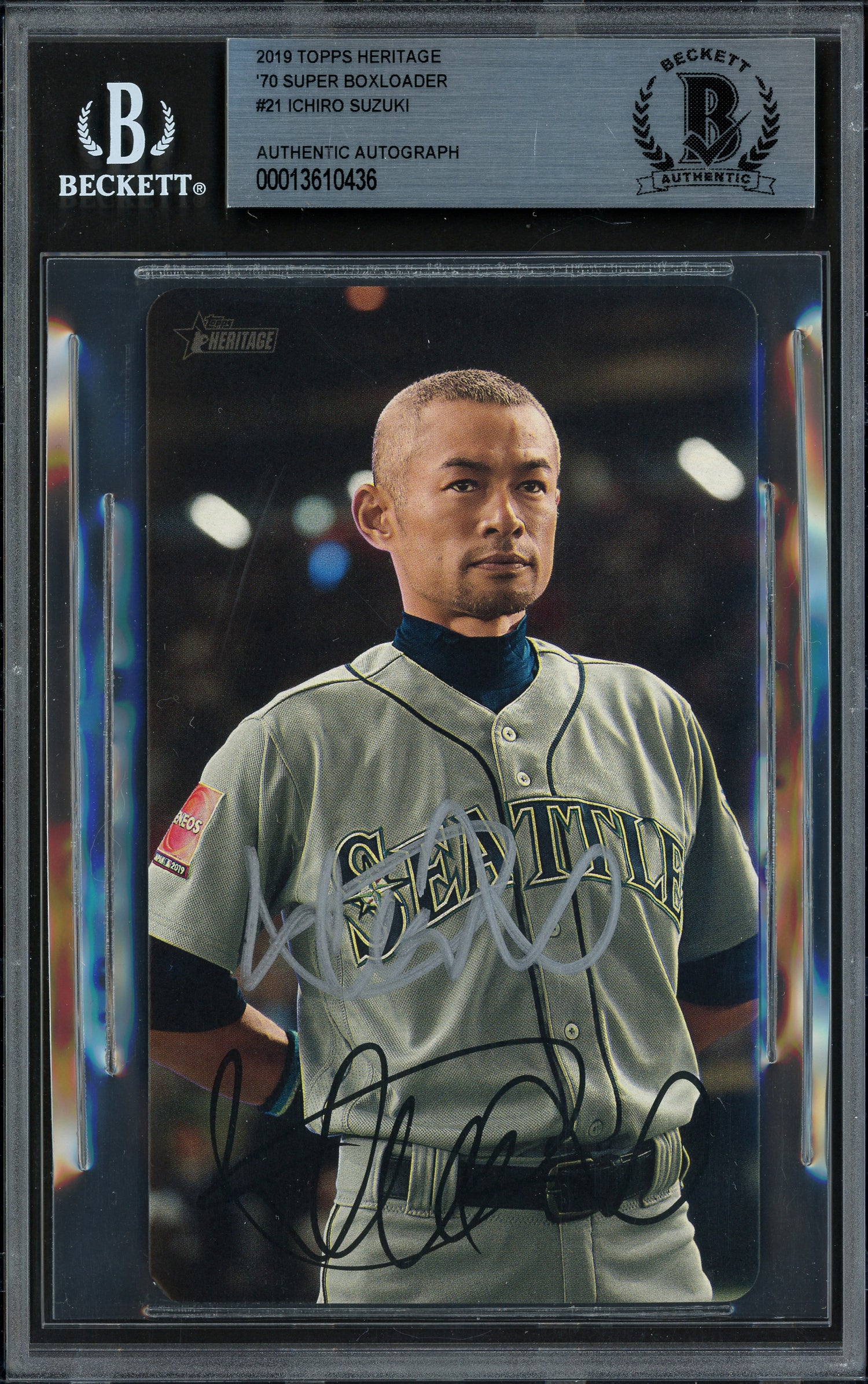 Ichiro Suzuki Autographed 2019 Heritage High Number Box Topper 3x5 Card #21 Seattle Mariners Beckett BAS #13610436