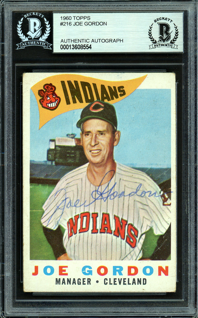 Joe Gordon Autographed 1960 Topps Card #216 Cleveland Indians Beckett BAS #13608554