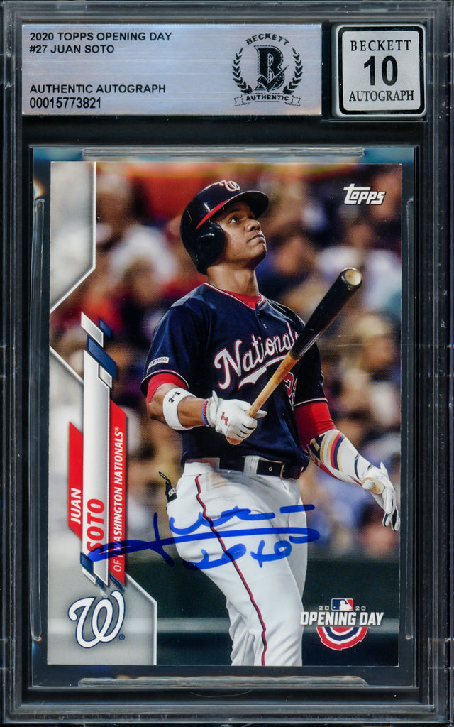 Juan Soto Autographed 2020 Topps Opening Day Card #27 New York Mets Auto Grade Gem Mint 10 Beckett BAS #15773821