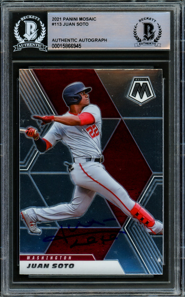Juan Soto Autographed 2021 Panini Mosaic Card #113 New York Mets Beckett BAS #15866945