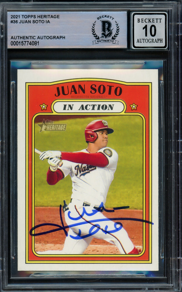 Juan Soto Autographed 2021 Topps Heritage Card #36 New York Mets Auto Grade Gem Mint 10 Beckett BAS #15774081