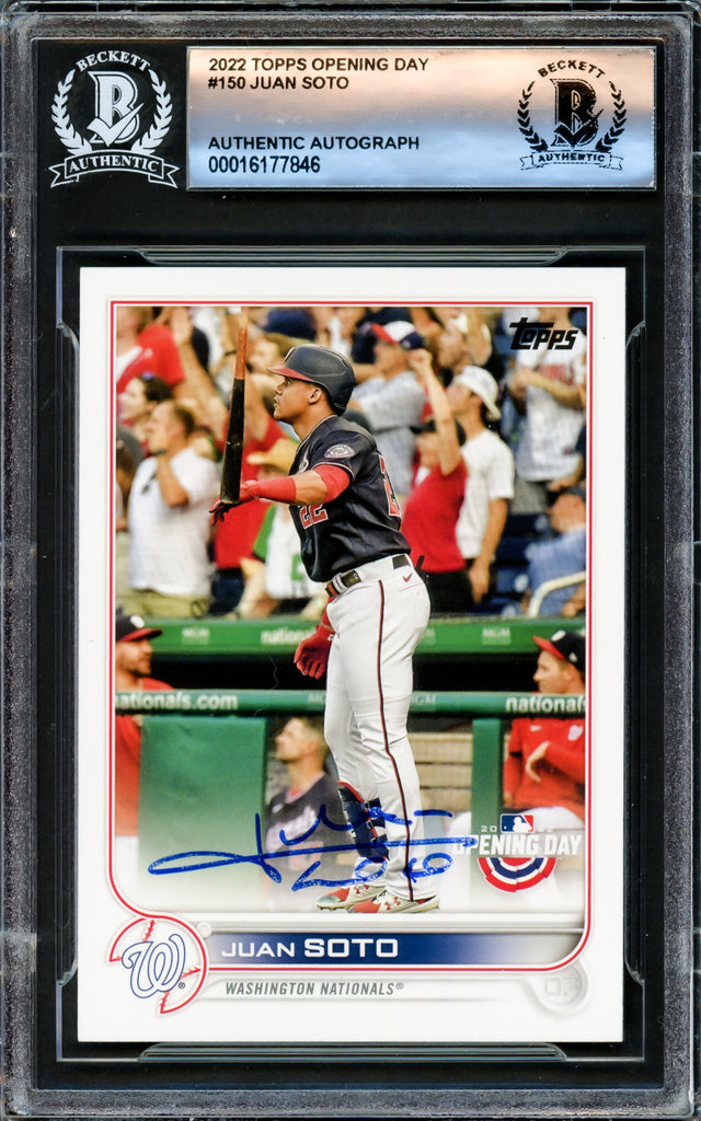 Juan Soto Autographed 2022 Topps Opening Day Card #150 New York Mets Beckett BAS #16177846