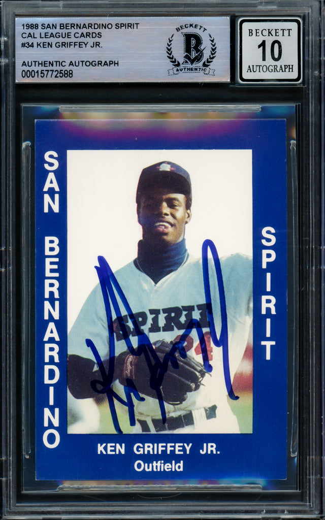 Ken Griffey Jr. Autographed 1988 Cal Cards Rookie Card #34 San Bernardino Spirit Auto Grade Gem Mint 10 Vintage Rookie Signature Beckett BAS #15772588