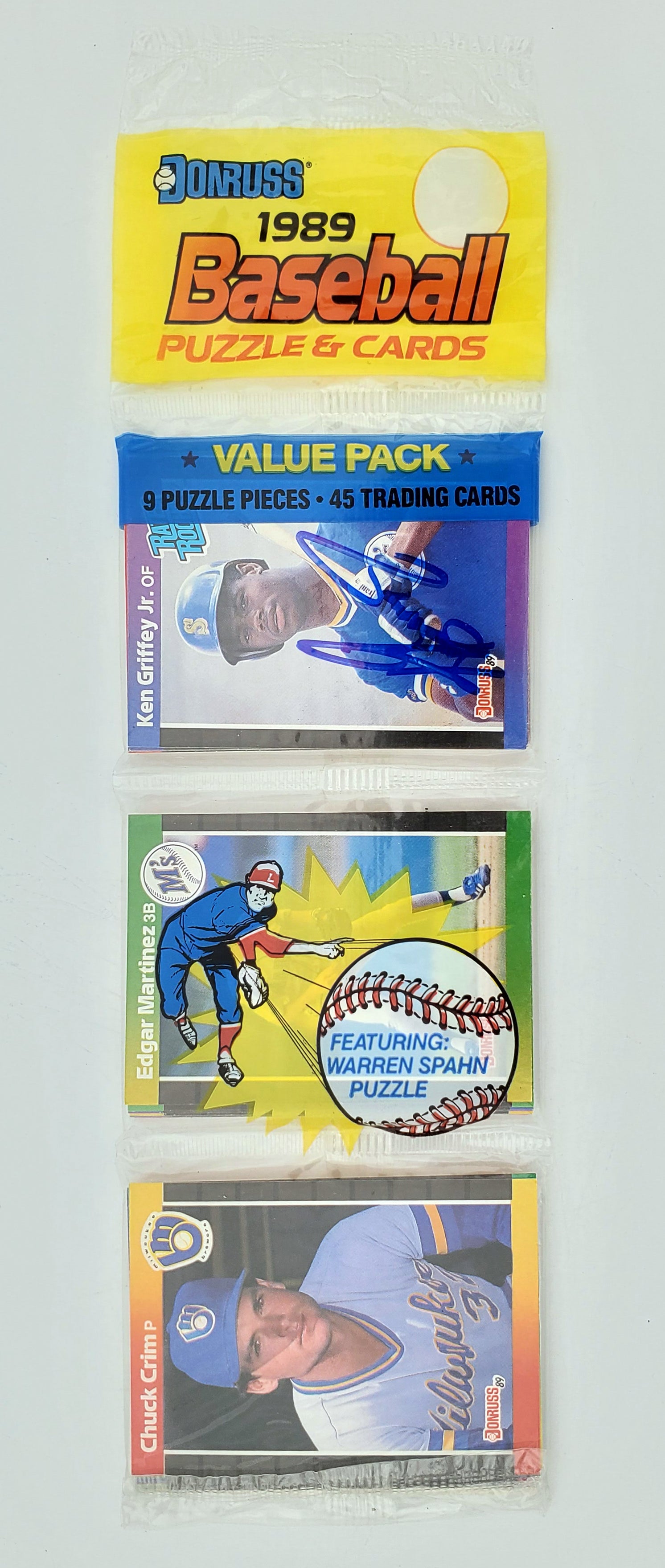 - Authentic Signature: Ken Griffey Jr. personally signed the original sealed wrapping of this 1989 Donruss Baseball Rack Pack.
