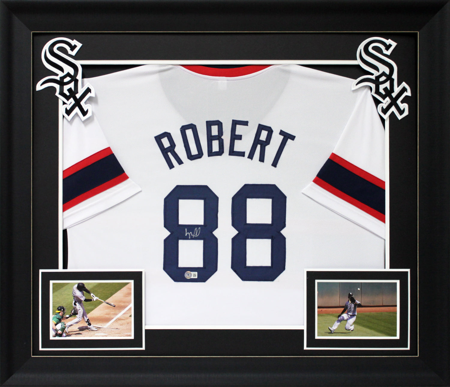 Luis Robert Authentic Signed White Throwback Pro Style Framed Jersey BAS Witness