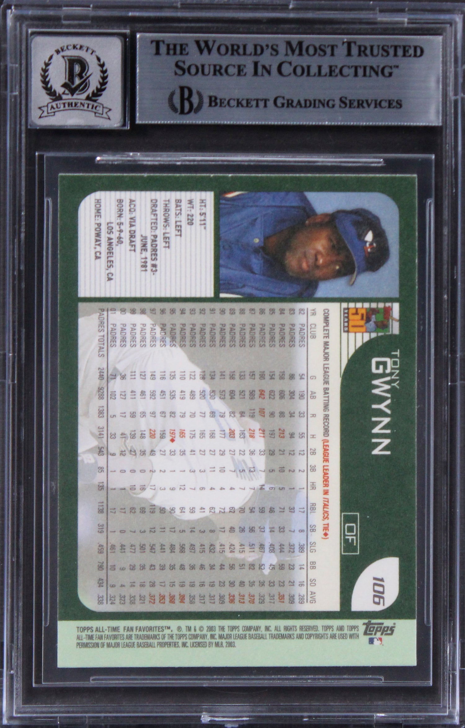 Padres Tony Gwynn Signed 2003 Topps All-Time Fan Favs Card Auto 10! BAS Slabbed is backordered and will ship as soon as it is back in stock.