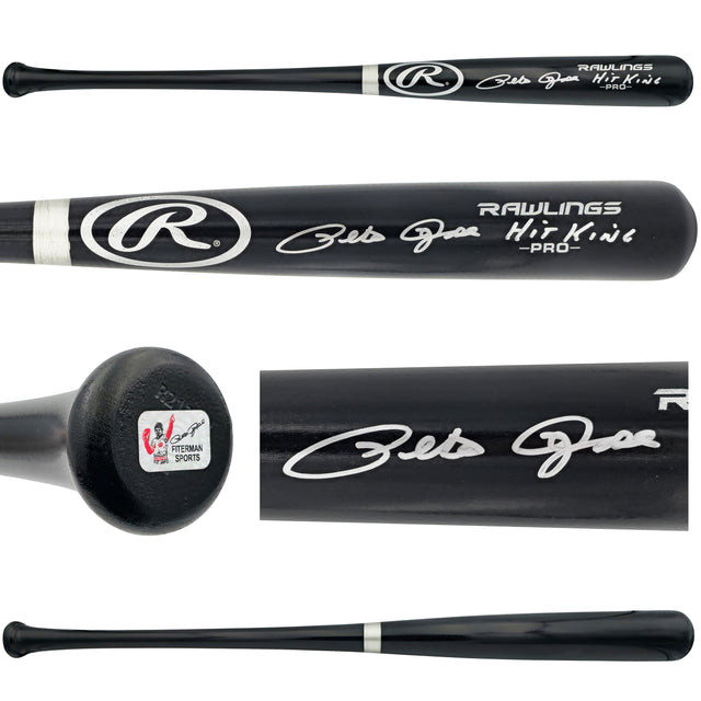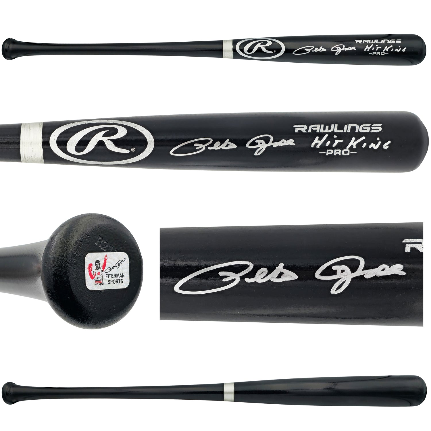 Own a piece of baseball history with this Black Rawlings Pro Baseball Bat, hand-signed by Pete Rose—one of the game’s greatest hitters. This exclusive collectible is personally inscribed with "Hit King", commemorating Rose's legendary status as Major League Baseball's all-time hits leader with 4,256 career hits. A must-have for serious collectors and devoted fans of the game, this premium memorabilia item is authenticated with the official tamper-proof Pete Rose hologram and a matching certificate of authenticity.
