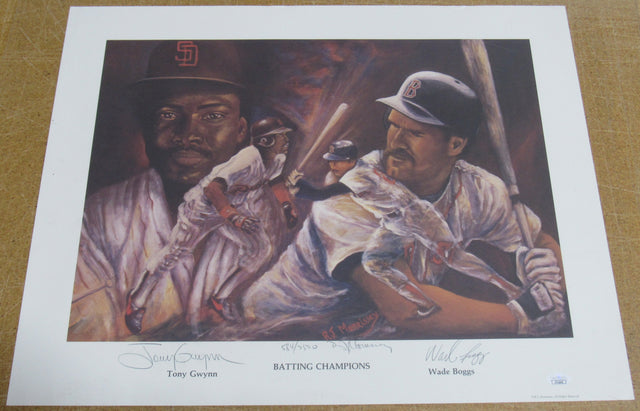 Tony Gwynn Wade Boggs Signed 16x20 Lithograph JSA CF42666
