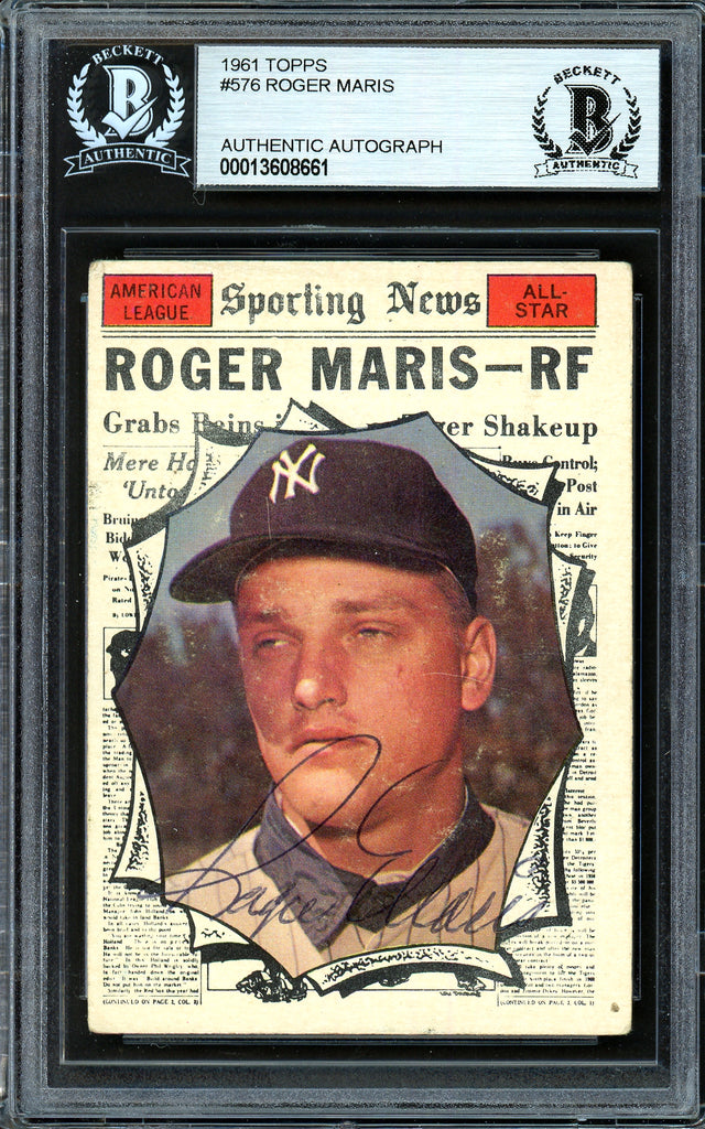 Roger Maris Autographed 1961 Topps Card #576 New York Yankees All-Star Beckett BAS #13608661