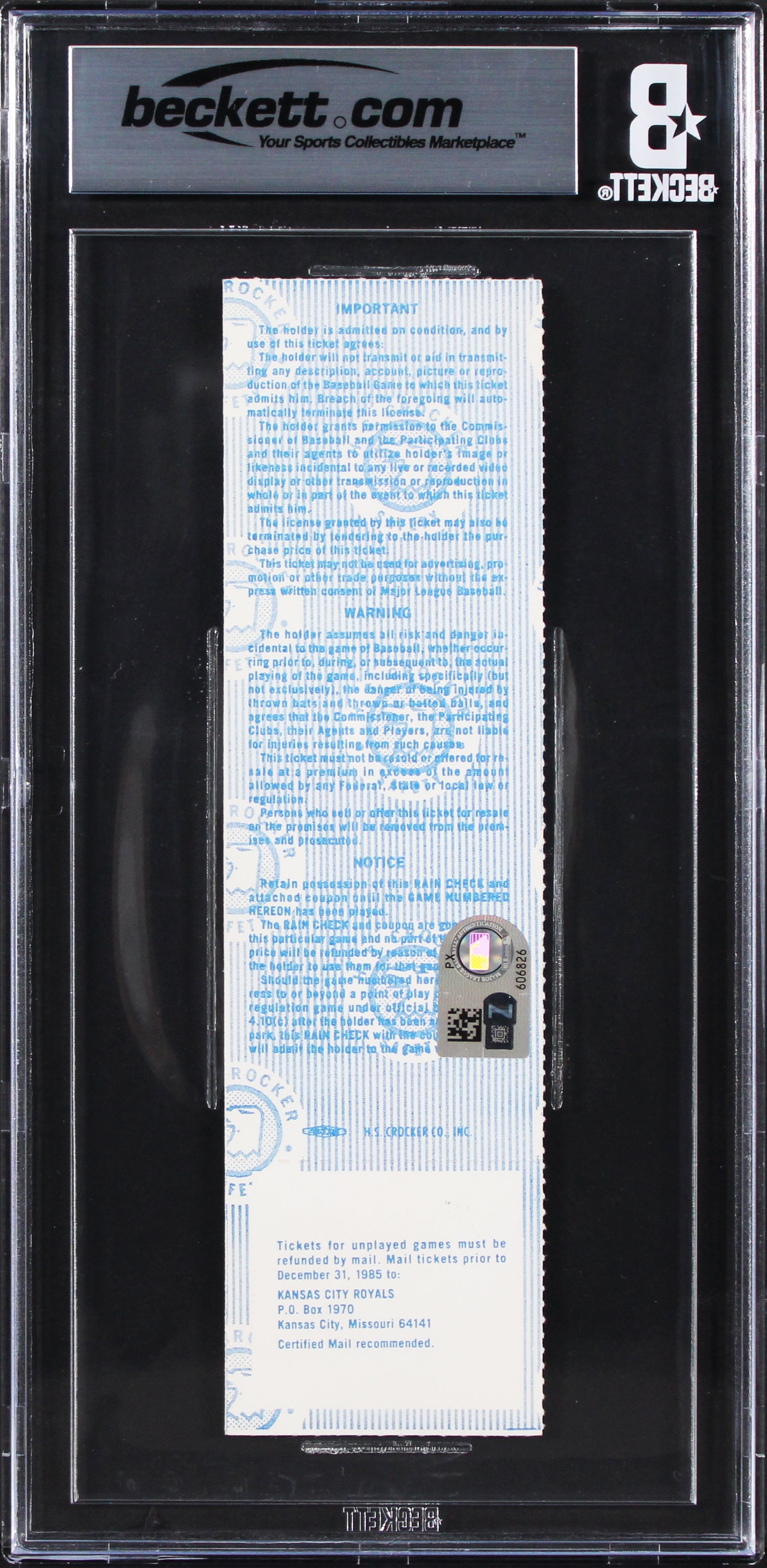 Royals George Brett 1985 WS Game 7 Full Ticket Graded NM-MT 8 Auto 10! BAS Slab is backordered and will ship as soon as it is back in stock.