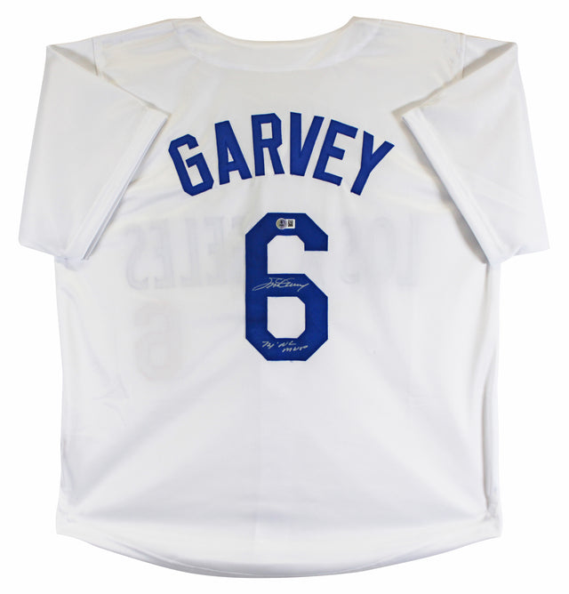 Celebrate a legendary moment in Los Angeles Dodgers history with this Steve Garvey Autographed White Pro Style Jersey, personally signed by the 1974 National League MVP himself. This custom-stitched, white Pro Style jersey is a must-have collectible for any true Dodgers fan or sports memorabilia collector. Garvey played a pivotal role in defining Dodgers baseball in the 1970s and early '80s, and his accomplishments on the field—especially during his 1974 MVP season—cemented him as one of the greats in MLB history. This jersey is authenticated through Beckett Authentication Services (BAS), one of the most trusted names in the industry. As a BAS Witnessed Protection Program item, a Beckett representative was physically present during the signing, providing confidence and peace of mind in the authenticity of the signature.