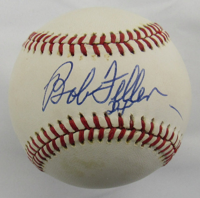 - Authentic Bob Feller signature on an official Rawlings baseball
