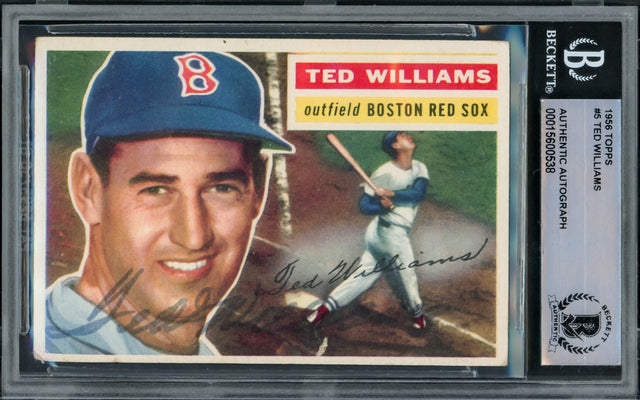 Ted Williams Autographed 1956 Topps Card #5 Boston Red Sox Beckett BAS #15600538