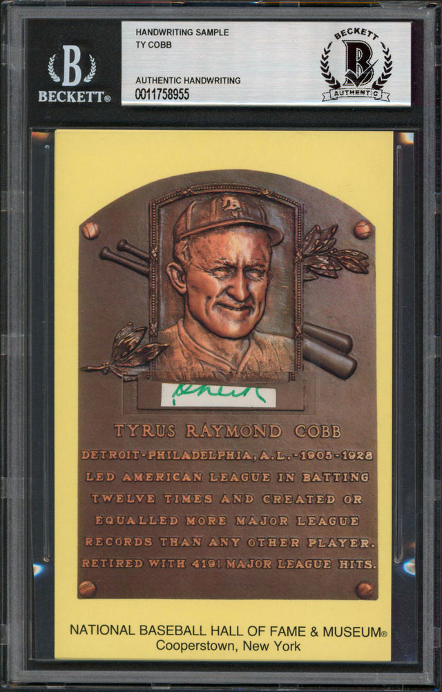 - Authentic Ty Cobb Handwriting Sample – Beckett slabbed and authenticated for guaranteed legitimacy.