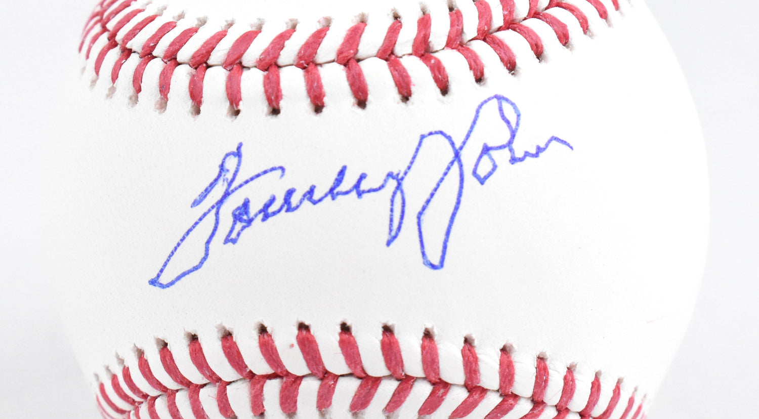 - Hand-autographed by Tommy John — legendary MLB pitcher with 288 career wins