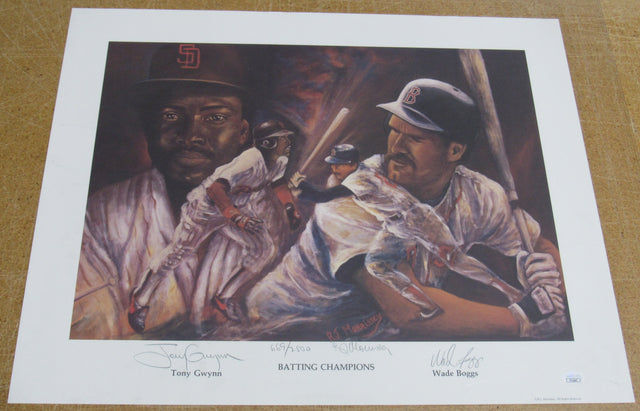 - Dual-signed 16x20 lithograph featuring baseball greats Tony Gwynn and Wade Boggs