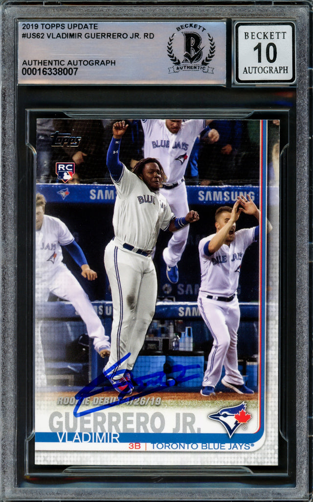 Vladimir Guerrero Jr. Autographed 2019 Topps Update Rookie Card #US62 Toronto Blue Jays Auto Grade Gem Mint 10 Beckett BAS Stock #222860