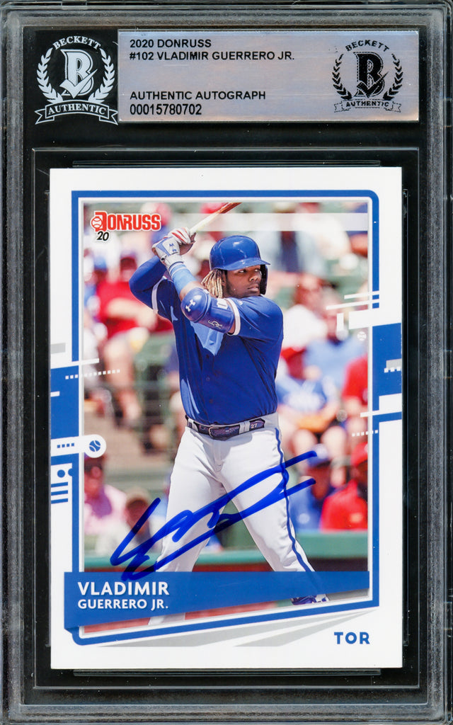 Vladimir Guerrero Jr. Autographed 2020 Donruss Card #102 Toronto Blue Jays Batting Beckett BAS #15780702