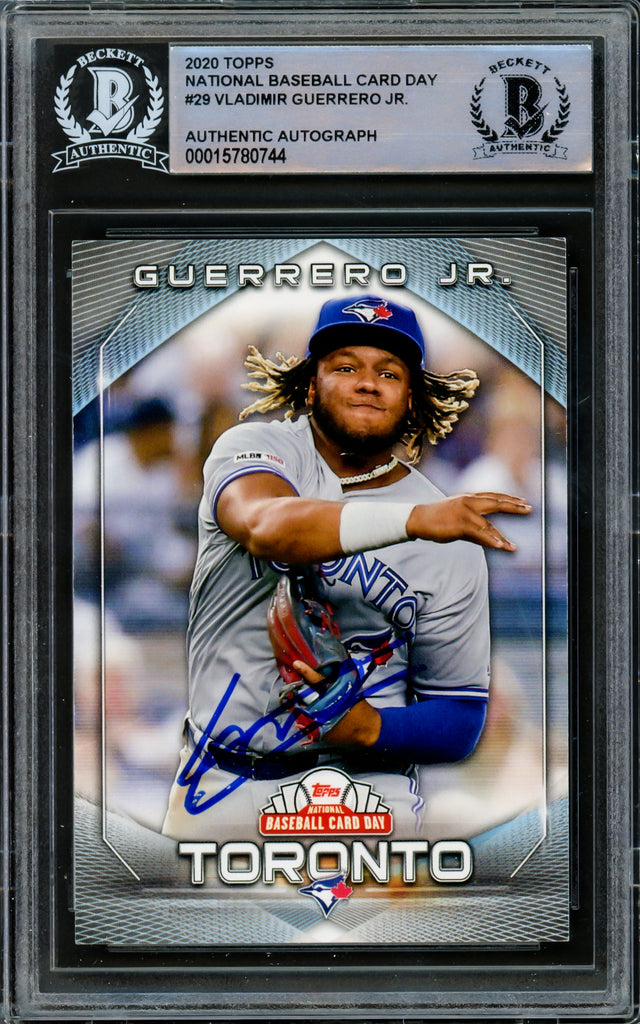 Vladimir Guerrero Jr. Autographed 2020 Topps National Baseball Card Day Card #29 Toronto Blue Jays Beckett BAS #15780744