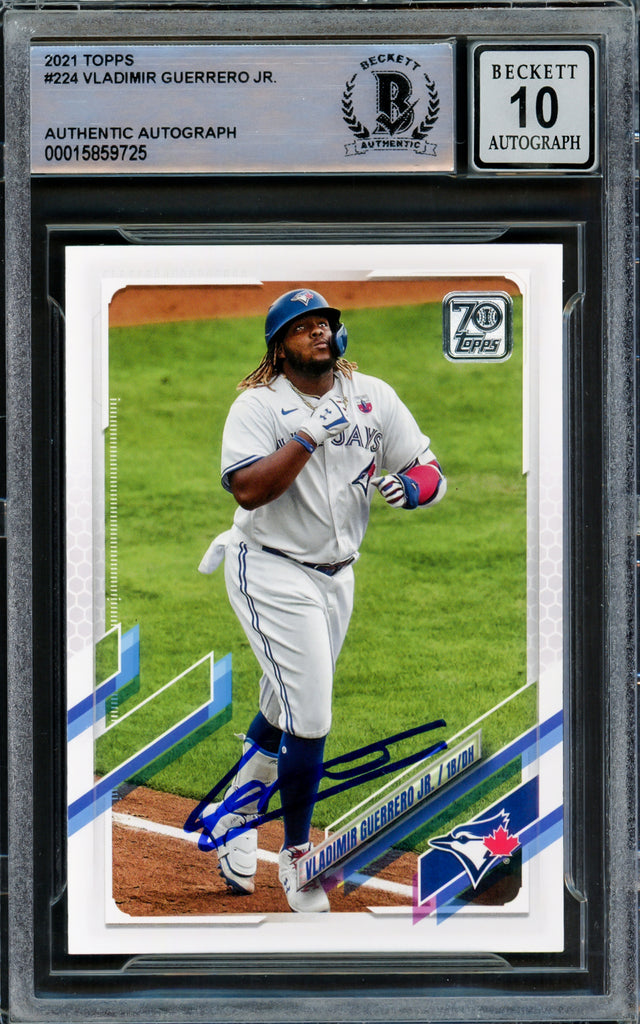 Vladimir Guerrero Jr. Autographed 2021 Topps Card #224 Toronto Blue Jays Auto Grade Gem Mint 10 Beckett BAS Stock #218653