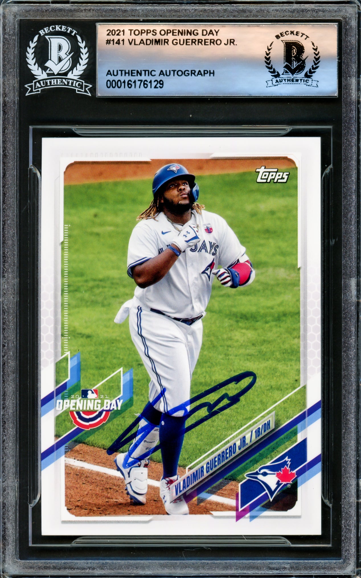 Vladimir Guerrero Jr. Autographed 2021 Topps Opening Day Card #141 Toronto Blue Jays Beckett BAS #16176129