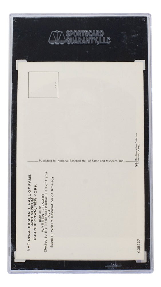 - Official Hall of Fame plaque postcard featuring Warren Spahn