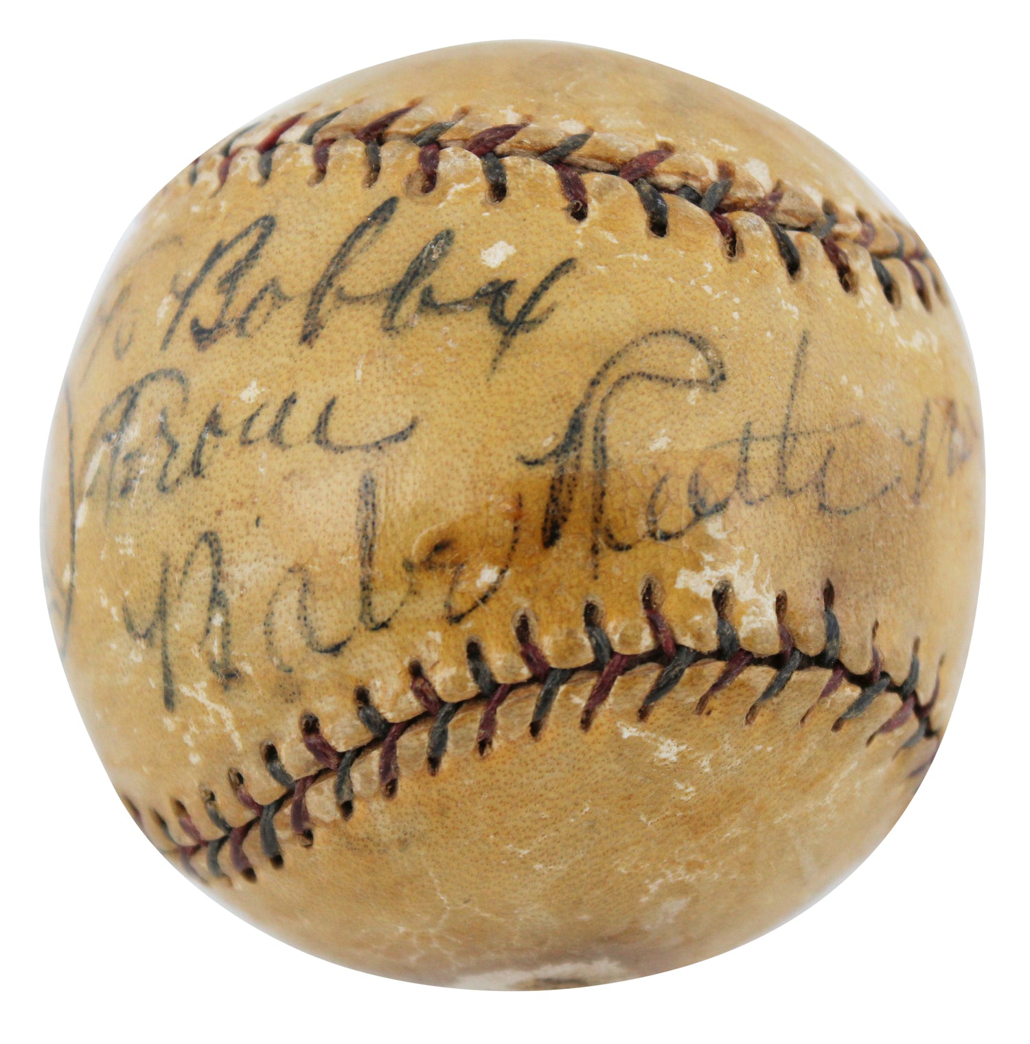 Own a rare piece of baseball history with this Autographed Union League Baseball, personally signed by the legendary Babe Ruth of the New York Yankees. This exceptional collectible features the inscription "To Bobby, From", adding a unique personal touch from one of the most iconic figures in sports history.