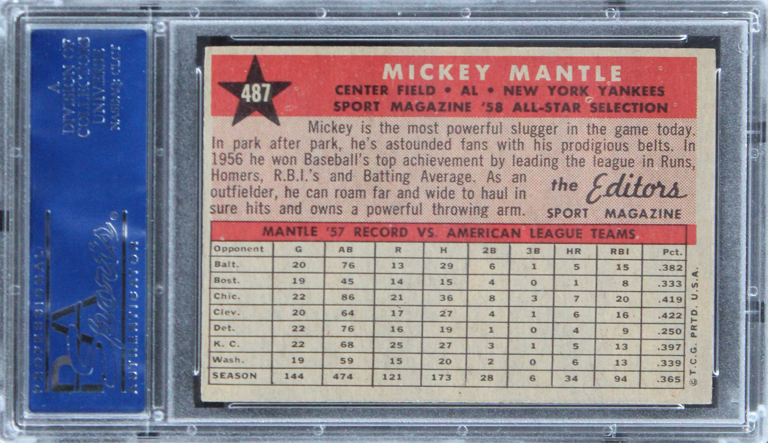 Yankees Mickey Mantle Authentic Signed 1958 Topps #487 Card PSA/DNA Slabbed
