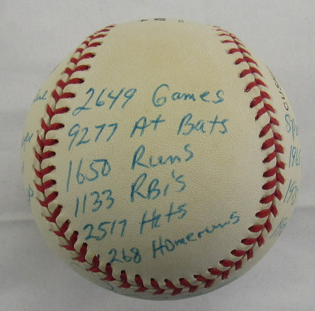 Joe Morgan Signed Auto Rawlings Stat Baseball Reggie Jackson COA A27986