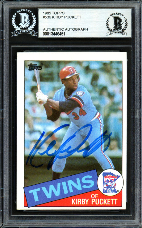 Kirby Puckett Autographed 1985 Topps Rookie Card #536 Minnesota Twins Beckett BAS #13446451