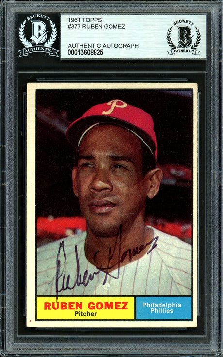 Very low stock (1 unit)$259Unit price /UnavailableRuben Gomez Autographed 1961 Topps Card #377 Philadelphia Phillies Beckett BAS #13608825