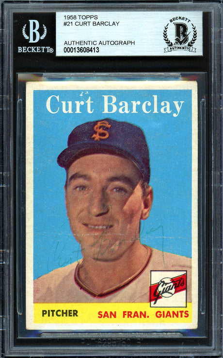 Very low stock (1 unit)$299Unit price /UnavailableCurt Barclay Autographed 1958 Topps Card #21 San Francisco Giants Beckett BAS #13608413