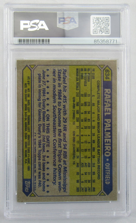 Very low stock (1 unit)$179Unit price /Unavailable Rafael Palmeiro 1987 Topps Signed Auto Autograph Baseball Card PSA Encapsulated